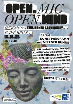 Zurück zur Übersicht ...Open Mic. Open Mind. Kleinkunstprogramm mit offener Bühne zum Thema seelische Gesundheit.